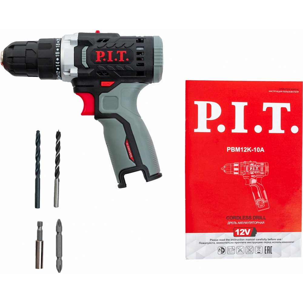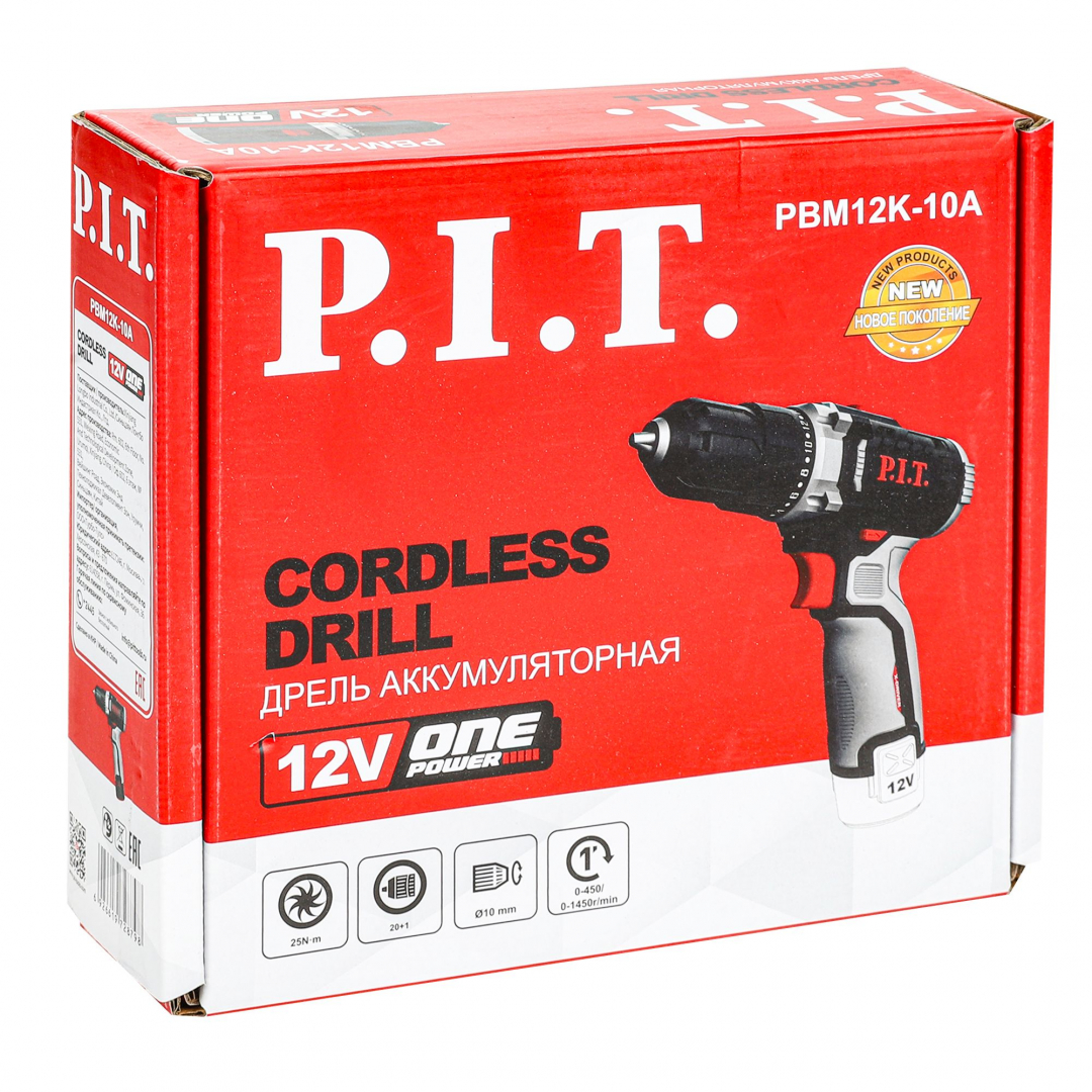 - Аккумуляторная дрель: модель P.I.T. PBM12K-10A (тушка).