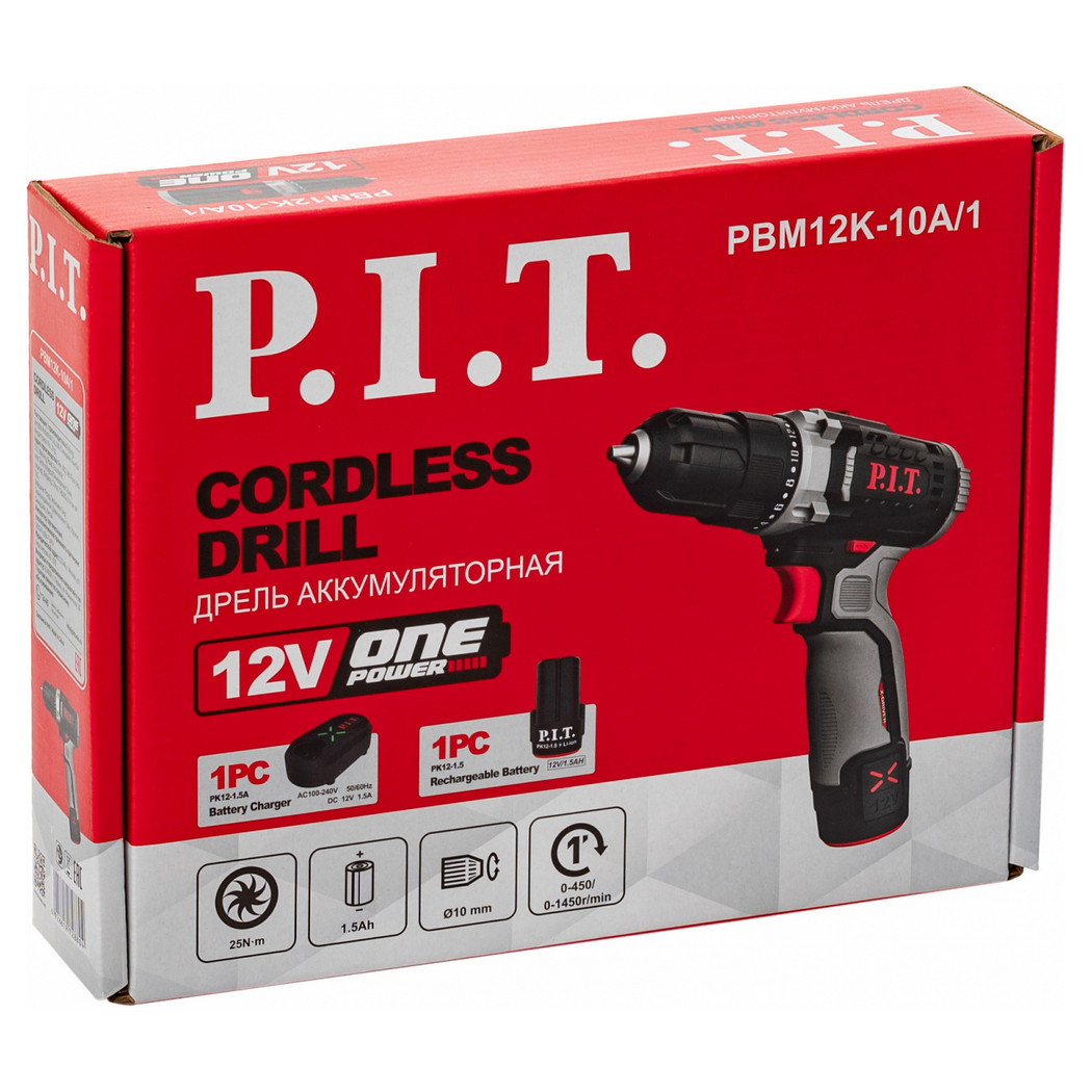- Аккумуляторная дрель: модель P.I.T. PBM12K-10A.