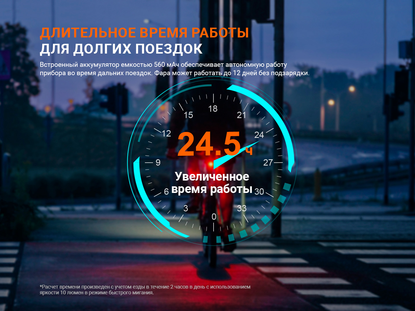 - быстрое мигание — 10 люмен — 24 часа 30 минут — 5 кандел;