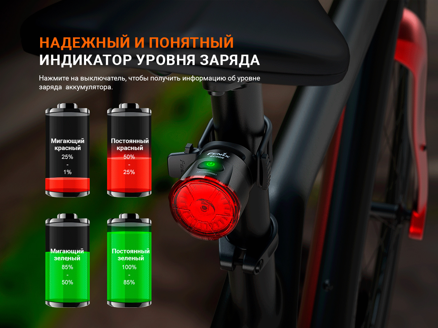 Описание заднего велосипедного фонаря Fenix BC06R: