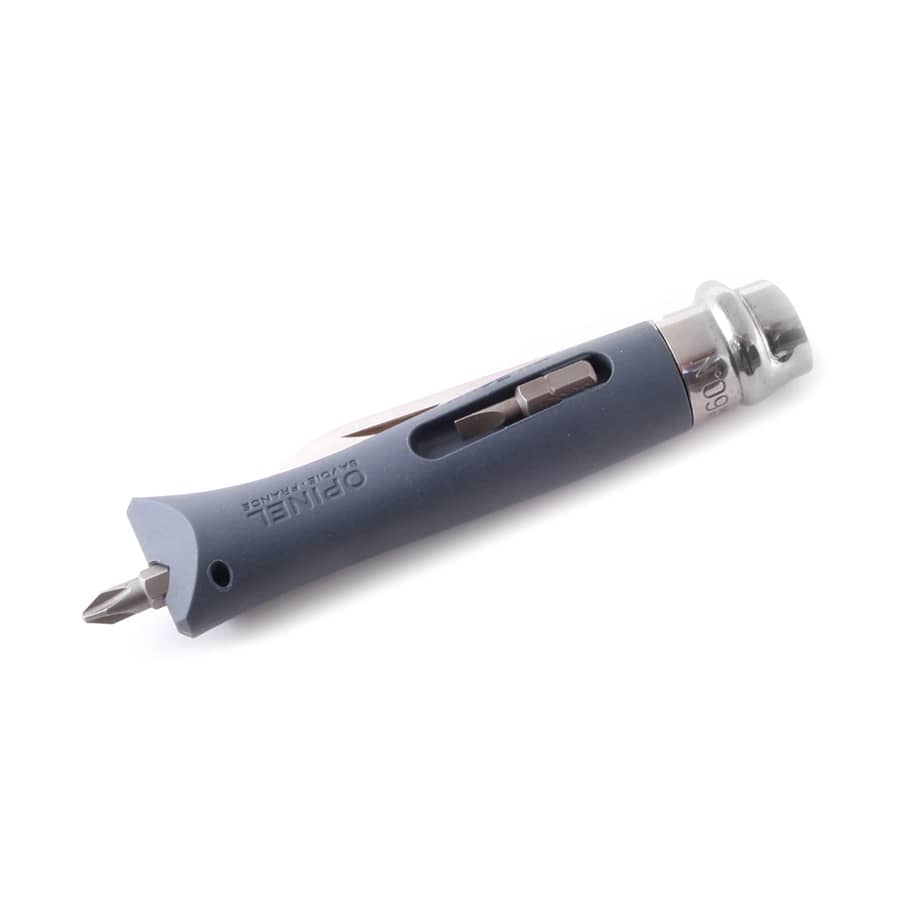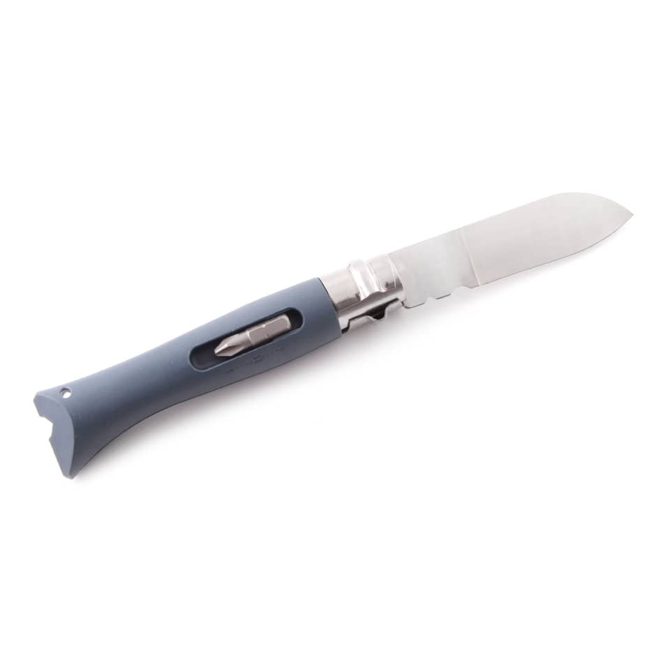 Практичный складной нож-мультитул с дополнительными функциями отвертки и инструмента для зачистки проводов. Будет полезен как в туризме, так и в быту или профессиональном применении. Нож достаточно компактный, что позволяет его держать всегда под рукой. Комплектуется двумя универсальными битами, хотя при необходимости можно использовать любую биту 25 мм. Клинок изготовлен из шведской коррозиестойкой стали Sandvik 12С27, у основания лезвия расположена пара углублений, с помощью которых можно обрезать или оголять провода. Рукоять из износостойкого прочного пластика серого цвета, предусмотрены отделения для удобного хранения двух бит. Клинок фиксируется при помощи надежного муфтового замка Viroblock. Нож качественной сборки, прочный и надежный. Произведен во Франции