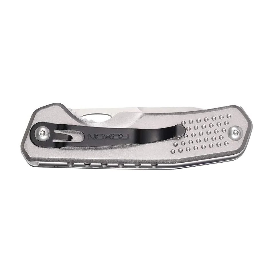 Модель Roxon Phantasy S502 представляет собой складной нож для применения в туризме и в активном отдыхе. Нож удобно и компактно складывается. Прекрасный внешний вид, гладкое полированное лезвие. Есть металлическая клипса для закрепления ножа и переноса, можно зафиксировать на кармане, на сумке либо на поясе. Нужный инструмент всегда у вас под рукой. Форма лезвия ножа – Drop-point, оно может взаимозаменяться с лезвием модели S802. Есть также сменные лезвия к ножу, чтобы можно было выполнять различные операции. Их следует приобретать отдельно.