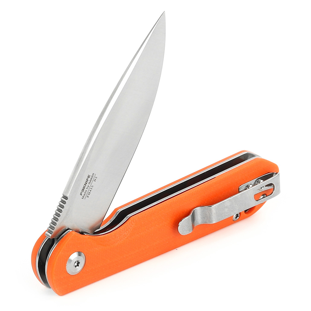 Лезвие с формой клинка Drop Point одинаково хорошо подходит для ситуаций, когда нужно что-то нарезать или наколоть. Толщина лезвия, которая равна 2.9 миллиметрам, обеспечивает качественный рез вне зависимости от сложности задачи. Открытие ножа происходит путем нажатия на стальной плавник, что позволяет управлять инструментом как правой, так и левой рукой.