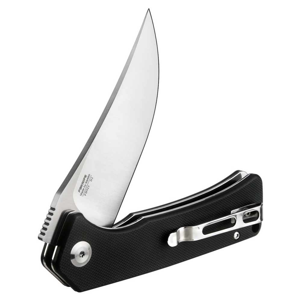 Нож складной, с фиксацией. Тип замка – Flipper. Прекрасная механика, запросто раскрывается и закрывается, безопасен в эксплуатации. Для комфорта предусмотрена клипса. С её помощью можно зафиксировать нож, подвесив к карману, на поясе, закрепив на сумке.
