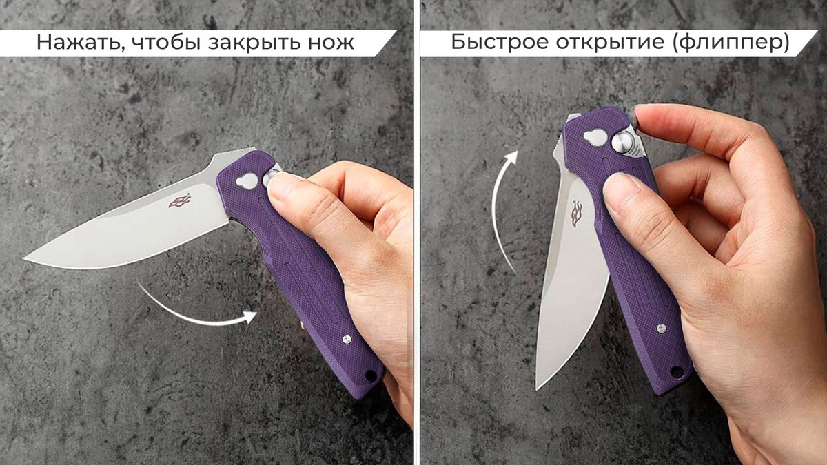 - Встроенный подшипник и флиппер обеспечивают плавное и быстрое открытие ножа одним движением.