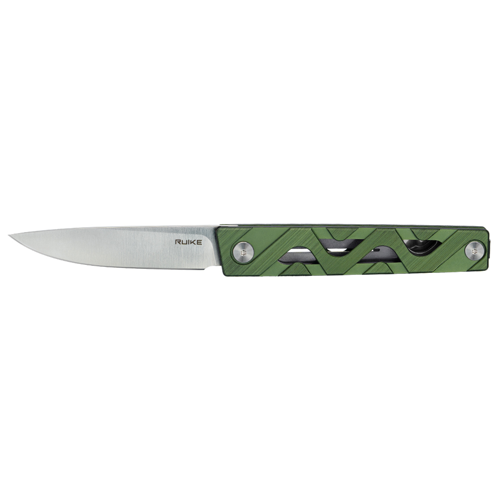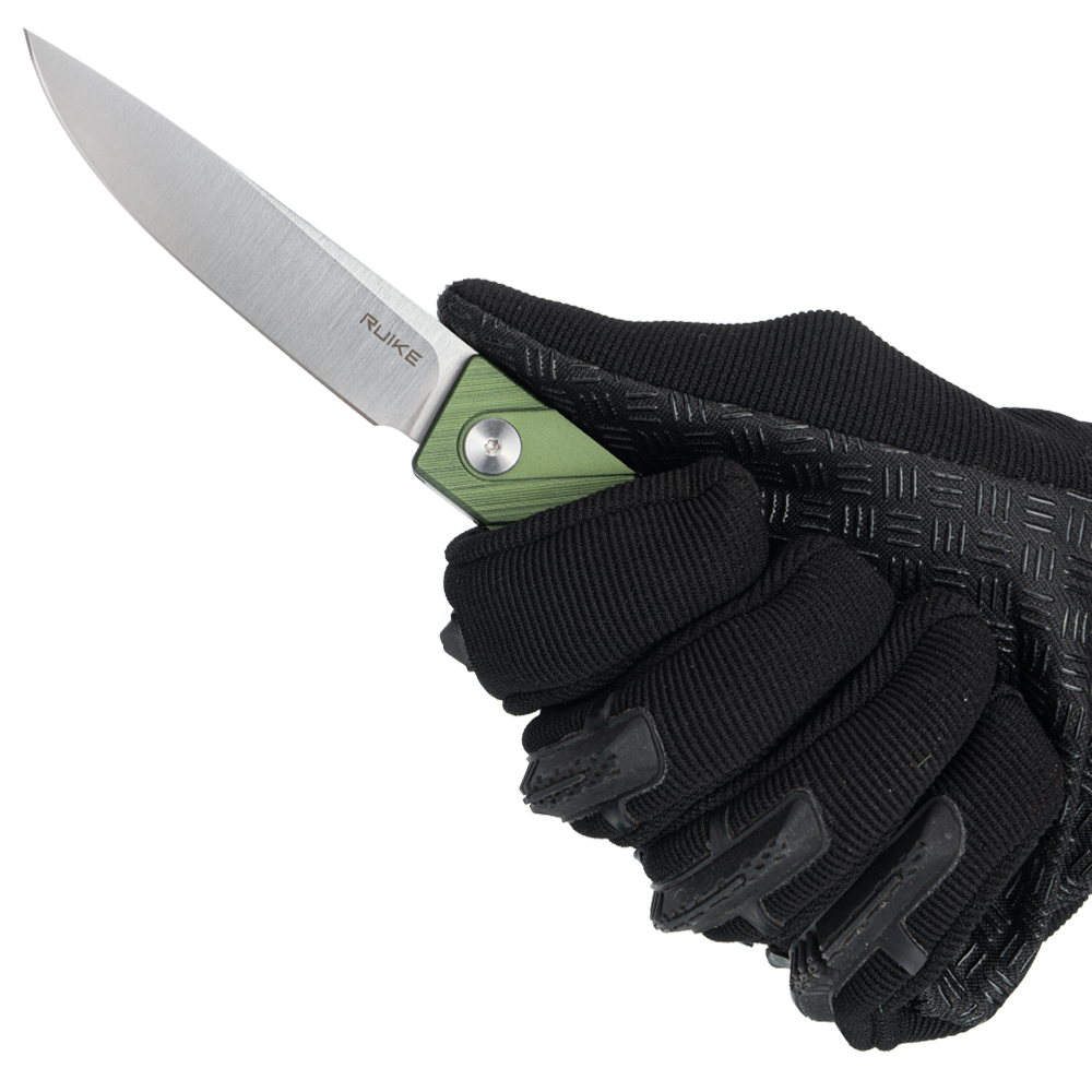 Модель Ruike P878-AK представляет собой современный EDC джентельменский складной ножик в строгом стильном дизайнерском оформлении. Отличный полезный помощник, который удобно держать всегда при себе. Клинок универсальной классической формы со спусками от обуха на базе шведской стали Sandvik 14C28N обладает отличными режущими свойствами. Рукоять состоит из двух плашек алюминиевого сплава AW-6063, которые изготовлены современным методом точной фрезеровки, благодаря чему нож смотрится крайне эффектно. Цвет рукояти темно-зеленый. Специальный фронтальный флиппер позволяет быстро раскрыть нож одной рукой. Для удобного ношения на кармане одежды или сумки предусмотрена достаточно широкая надежная прижимная клипса.