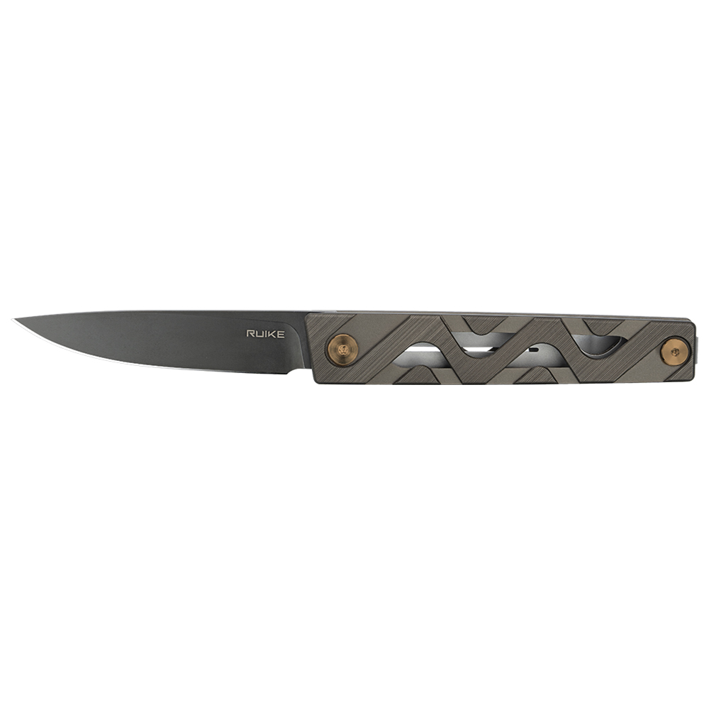 Модель Ruike P878-AK представляет собой современный EDC джентельменский складной ножик в строгом стильном дизайнерском оформлении. Отличный полезный помощник, который удобно держать всегда при себе. Клинок универсальной классической формы со спусками от обуха на базе шведской стали Sandvik 14C28N обладает отличными режущими свойствами. Покрытие Black Stonewash придает антибликовые свойства и дополнительно защищает от коррозии, стойкое к износу и царапинам. Рукоять состоит из двух плашек алюминиевого сплава AW-6063, которые изготовлены современным методом точной фрезеровки, благодаря чему нож смотрится крайне эффектно. Цвет рукояти матовый бронзовый. Крепежные элементы оформлены под латунь, что дополняет деловой стиль. Специальный фронтальный флиппер позволяет быстро раскрыть нож одной рукой. Для удобного ношения на кармане одежды или сумки предусмотрена достаточно широкая надежная прижимная клипса.