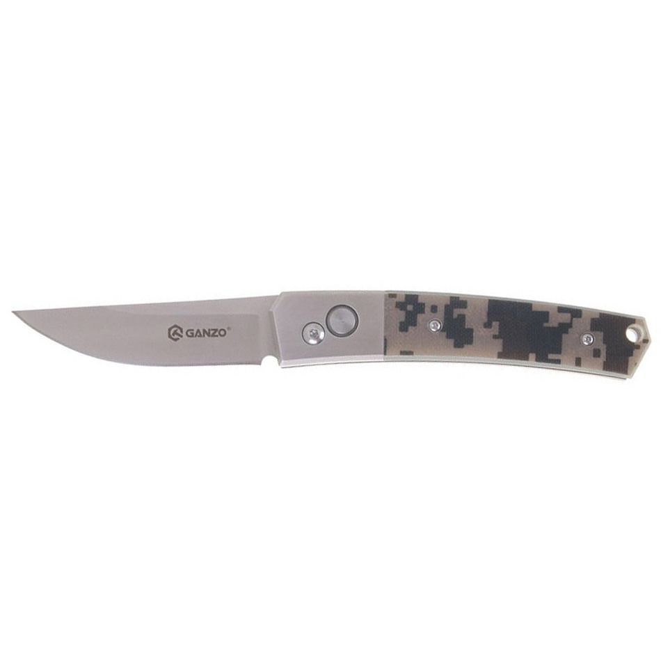 Надежный и практичный EDC нож-автомат от GANZO, лимитированная модель 2015 года - выпущена ограниченным тиражом. При компактном фор-факторе ножик обладает отменными режущими свойствам. Кнопочный механизм автоматического раскрытия надежен и неприхотлив в обслуживании, кнопка нажатия немного утоплена относительно корпуса для защиты от случайной активации. Поверхность клинка и части рукояти обработано методом Satin, благодаря чему ножик смотрится стильно и дорого. Накладки из G10 улучшают комфорт эксплуатации инструмента - обеспечивают отличную сцепку с ладонью и приятные на ощупь. Глубокая прижимная клипса полностью прячет нож на кармане, исключая лишнее внимание окружающих. Отверстие для ремешка позволяет украсить модель темляком на Ваш вкус..