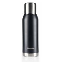 Термос 1000 мм из пищевой нержавеющей стали AISI 304. Универсального назначения. Долгое время сохраняет температуру содержимого - в течении суток кипяток остывает до 55℃. Крышка представляет собой термокружку. Поверхность термоса окрашена в матовый черный цвет. Медное напыление на внешней стороне колбы усиливает теплоизоляцию. Большая емкость подойдет для компании из двух-трех людей.