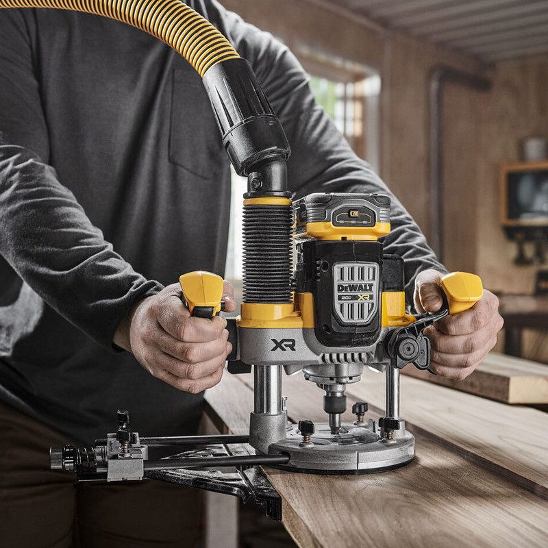 Современный профессиональный аккумуляторный фрезер с выходной мощностью 1700 Вт. Про достаточно компактном исполнении и небольшом весе обеспечивает высокую производительность, полностью раскрывает свой потенциал на аккумуляторах PowerStack и PowerPack. Регулировка оборотов 11 000 – 23 000 об/мин с поддержкой установленной скорости под нагрузкой. Фирменный 3-х позиционный механизм регулировки глубины обработки с точным микроподводом. Система Perform & Protect™ Anti-Rotation™ отключит фрезер при клине фрезы и рывке инструмента. Мощная двойная светодиодная подсветка. Модель DCW620B поставляется без аккумуляторов и зарядного устройства с базовым набором аксессуаров в коробочной упаковке.