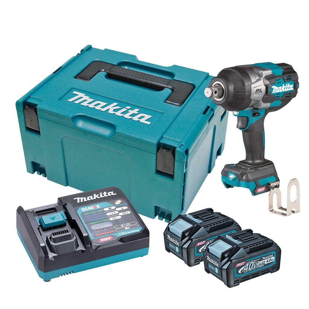 - Аккумуляторы BL4040 (2 шт.): Литий-ионные батареи серии XGT 40V Max емкостью 4.0 Ач с индикатором уровня заряда.