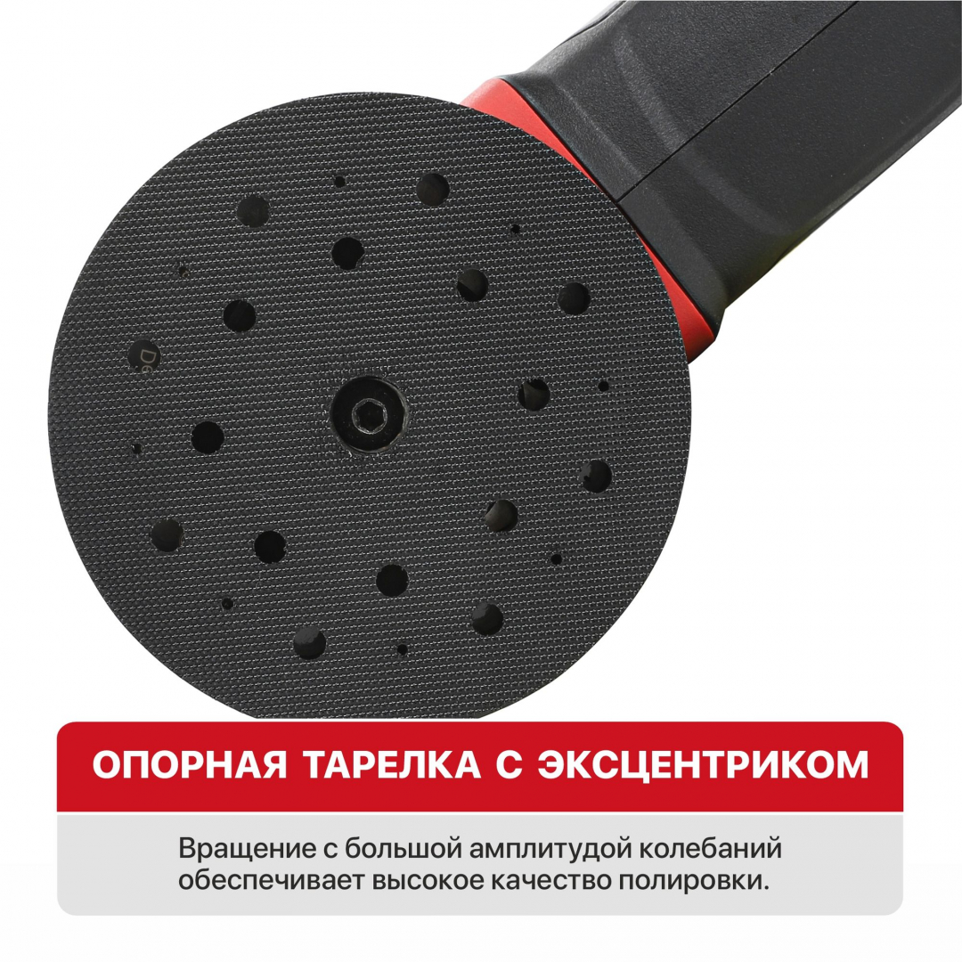 - Опорная тарелка с эксцентриком (амплитуда 15 мм) для качественной финишной обработки.