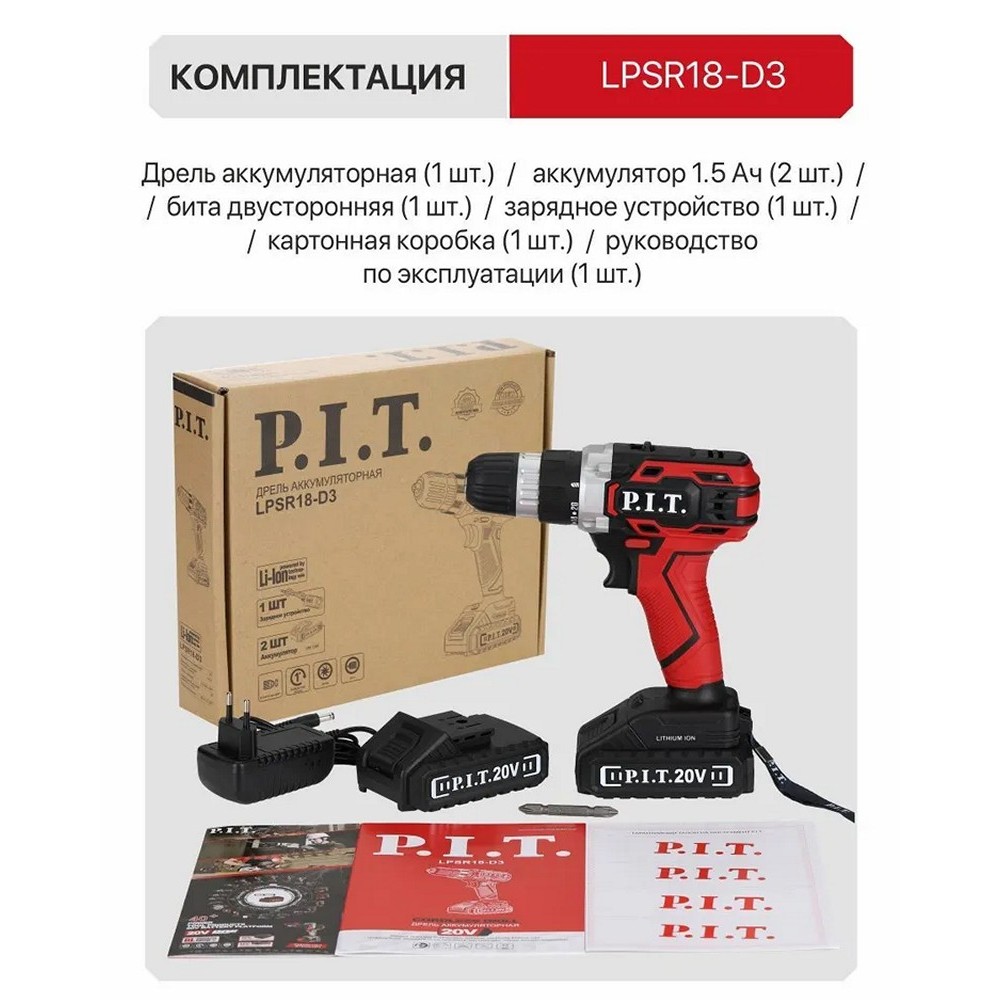 - Аккумуляторная дрель-шуруповерт: основной рабочий блок модели P.I.T. LPSR18-D3.