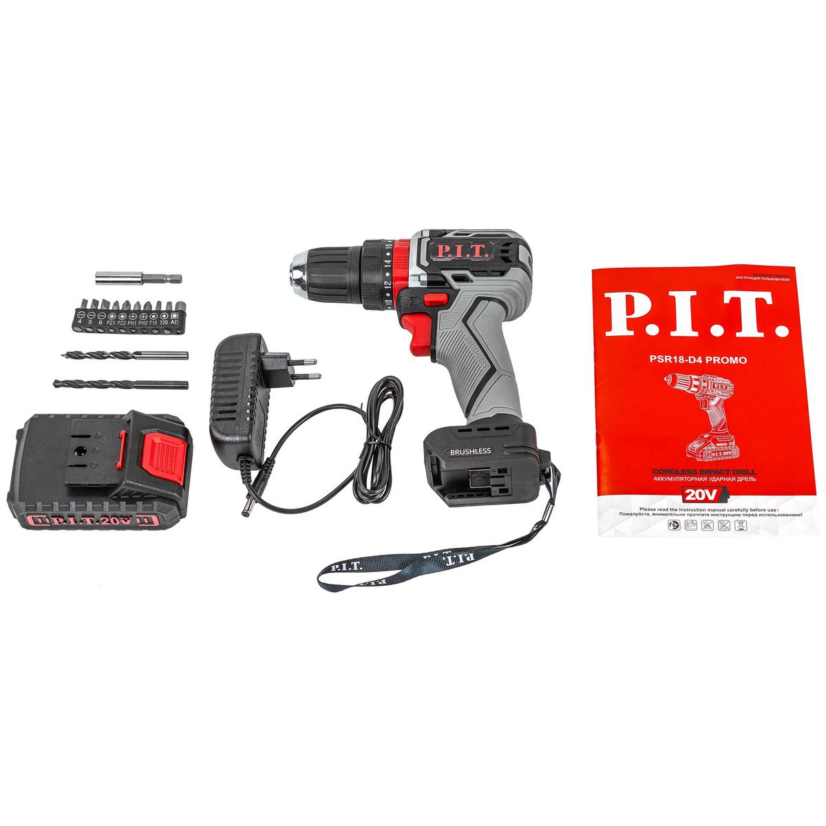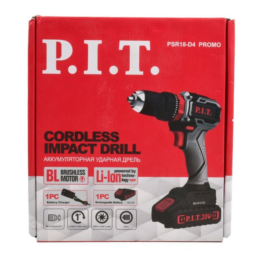 - Аккумуляторная дрель-шуруповерт: бесщеточная модель P.I.T. PSR18-D4.