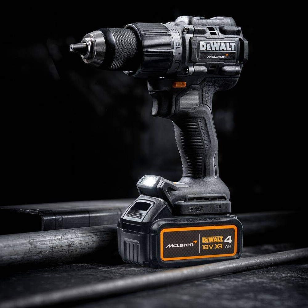 Эксклюзивная модель бесщеточной ударной дрели-шуруповерта DeWALT с дизайном от специалистов McLaren F1, выпускается ограниченным тиражом. Инструмент обладает передовой технической начинкой - бесщеточный двигатель G3 (третьего поколения) с современным электронным блоком. Шуруповерт выдает крутящий момент до 90 Нм, имеет ударный режим для сверления кирпича, яркость и направление подсветки можно регулировать. Наличие защиты от перегрузки и перегрева. Корпус выполнен из высокопрочного индустриального стеклопластика с прорезиненными элементами захвата. Металлический усиленный патрон индустриального класса с одноручным дожимом. Модель DCD85MM2T-QW поставляется с двумя батареями XR Li-Ion емкостью 4 Ач и универсальным зарядным устройством 4А в кейсе TSTAK™ уникального оформления.