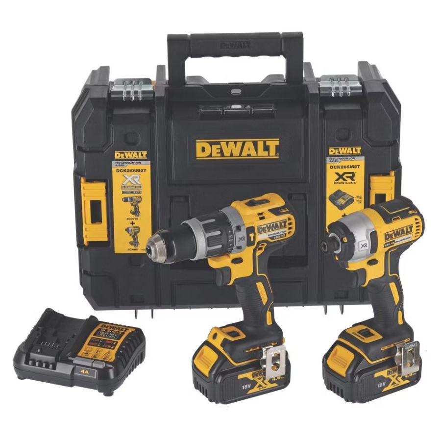 DeWalt DCK266M2T — профессиональный набор электроинструментов, включающий ударную дрель-шуруповёрт DCD796 с электронной регулировкой оборотов и 15 ступенями крутящего момента, а также компактный импульсный шуруповёрт DCF887 с бесщёточным двигателем; комплект оснащён двумя литий-ионными аккумуляторами ёмкостью 4,0 А·ч каждый, универсальным зарядным устройством и прочным кейсом T-Stack для удобной транспортировки и хранения, что делает его оптимальным выбором для выполнения широкого спектра строительных и ремонтных работ.