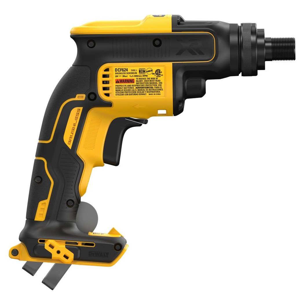 Модель DCF624 для американского рынка с маркировкой 20V, инструмент полностью совместим с батареями 18V. Высокоэффективный узкоспециализированный аккумуляторный бесщеточный шуруповерт для профессиональных монтажных работ «металл к металлу» со стальными конструкциями, настилами и кровлей. Резьбовой корпус муфты (Threaded Clutch Housing) - главная особенность модели, позволяющая устанавливать профессиональные системы автоподачи саморезов как от DEWALT, так и от сторонних производителей. Инструмент оборудован эргономичной прорезиненной рукояткой с возможностью хвата в двух позициях, функцией блокировки курка для комфортной длительной работы, встроенной LED-подсветкой рабочей зоны и реверсом. Особую практичность придаёт универсальный поясной держатель, адаптированный как для правшей, так и для левшей. Версия комплектации «Body Only» - включает в себя только инструмент без аккумуляторов и зарядного устройства, поставляется в коробочной упаковке.