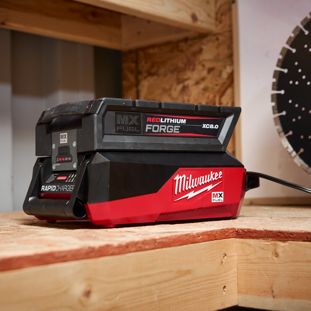 Зарядное устройство Milwaukee MXF FC (артикул 4933498547) — быстрое зарядное устройство для аккумуляторов серии MX FUEL (72 В). Оснащено системой активного охлаждения COOL‑CYCLE™ для ускоренного отвода тепла и сокращения времени простоя. Поддерживает интеллектуальную технологию REDLINK™ для взаимодействия с аккумулятором и оптимизации производительности. Устройство заряжает аккумулятор MX FUEL FORGE 8,0 А·ч менее чем за 65 минут, MX FUEL FORGE 12,0 А·ч — за 100 минут, а MX FUEL 6,0 А·ч — за 45 минут. Корпус имеет складной держатель для удобной переноски. Полная совместимость со всеми аккумуляторами линейки MX FUEL. Модель работает от сети 220–240 В. Поставляется в картонной упаковке.