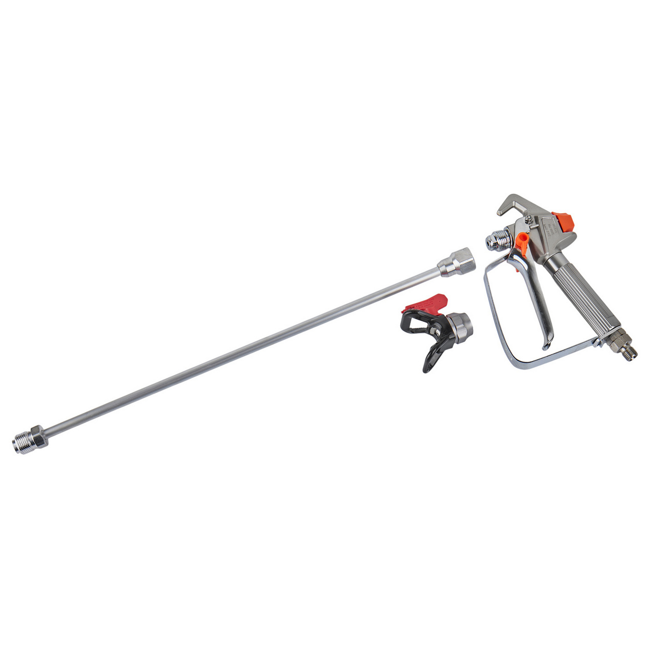 - Комплектация: включает краскопульт, пистолет-распылитель, шланг высокого давления, всасывающий и сливной шланги, всасывающий фильтр, удлинитель 50 см, сменные сопла (3 шт.), масло (60 мл) и паспорт.