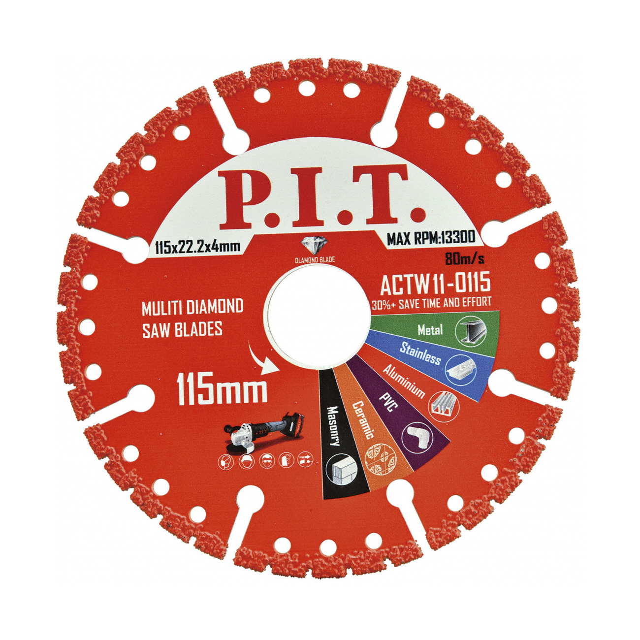 Алмазный сегментированный диск P.I.T. ACTW11-0115 серии DRUA — это универсальная высокопрочная оснастка, разработанная для эффективной резки металлов и твердых строительных материалов. Основное назначение данной модели — работа со стальными профилями, арматурой, листовым металлом, а также кирпичом, камнем и пластиком. В отличие от абразивных кругов, алмазный диск по металлу сохраняет постоянный диаметр в течение всего срока службы, не искрит так интенсивно и обладает значительно большим ресурсом, что делает его выгодным и безопасным решением для демонтажных и общестроительных работ.