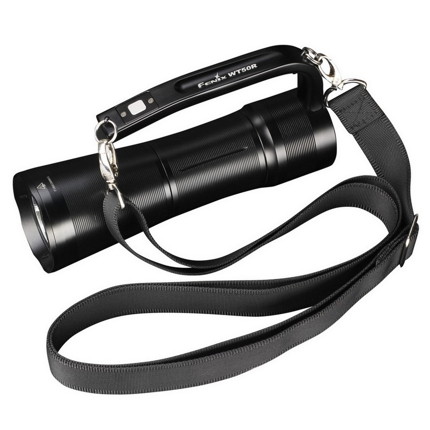 Надежность фонаря Fenix WT50R обеспечивает защита от коротких замыканий, драйвер стабилизации яркости, а также полностью влагоизолированный корпус из алюминия, невосприимчивый к окислительным процессам. Эта модель весит 472 г, а потому продается вместе с ремешком, позволяющим носить фонарь на плече. Также производители предусмотрели для Fenix WT50R опцию крепления на штатив со стандартным размером резьбы.