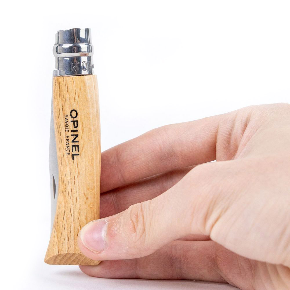 Отличный многоцелевой складной нож в традиционном дизайне, идеальный вариант для туристических вылазок на природу, полезный инструмент в любую поездку. Нож оснащен достаточно прочным клинком из шведской нержавеющей стали Sandvik 12C27, лезвие в меру тонкое, отлично подойдет разрезания продуктов и мяса. Рукоять из натурального дерева - массива бука, который покрыли качественным бесцветным лаком для защиты от влаги и загрязнений. Для фиксации клинка используется фирменный муфтовый замок Viroblock. Нож компактный и в меру легкий, займет минимум места в кармане сумки или рюкзака. Высокое качество сборки, нож произведен во Франции.
