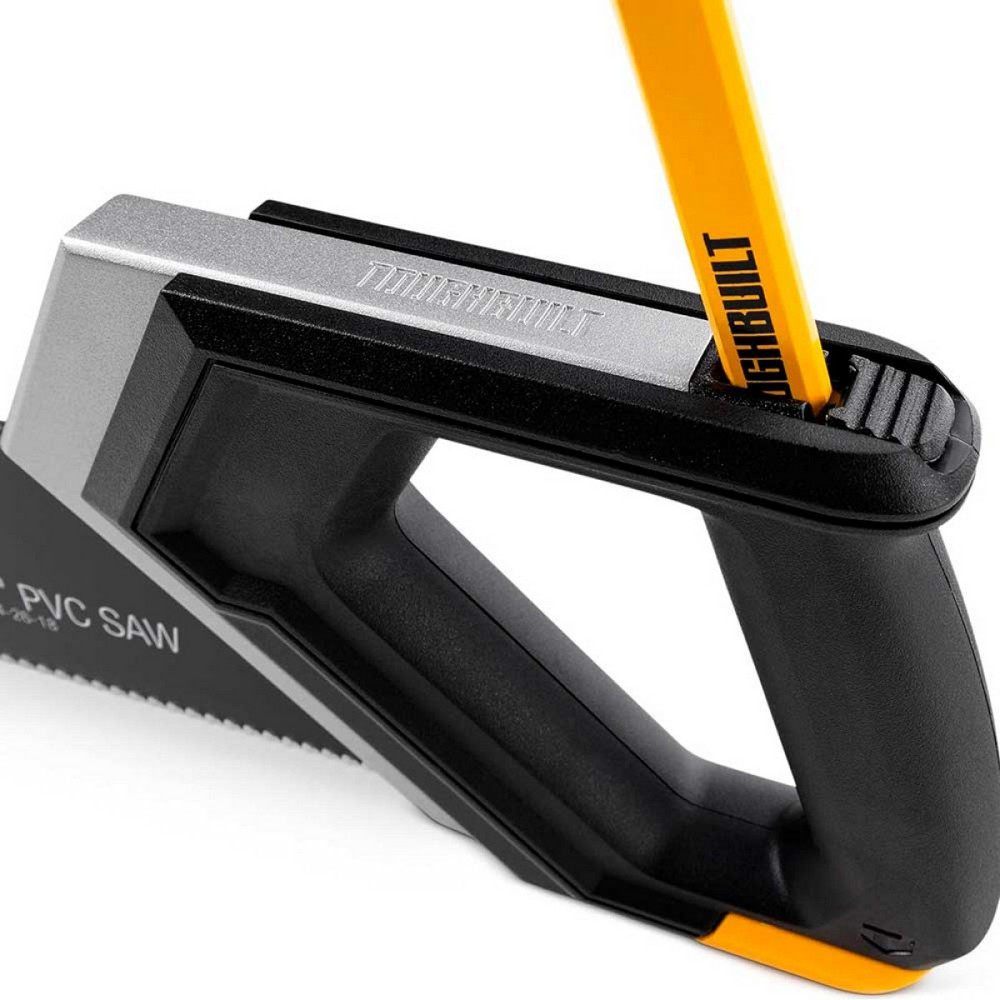 Профессиональная ручная пила по пластиковым трубам и заготовкам из PVC. Усиленное пильное полотно универсальной длины 250 мм с закаленными зубьями размером 10 TPI. На обухе размещена шкала. Рукоять имеет надежное соединение с полотном, позволяя выполнять рез с большим усилием. Продуманная до мелочей эргономика для комфортной эффективной работы. Как бонус - в рукоятке расположен отсек для карандаша.